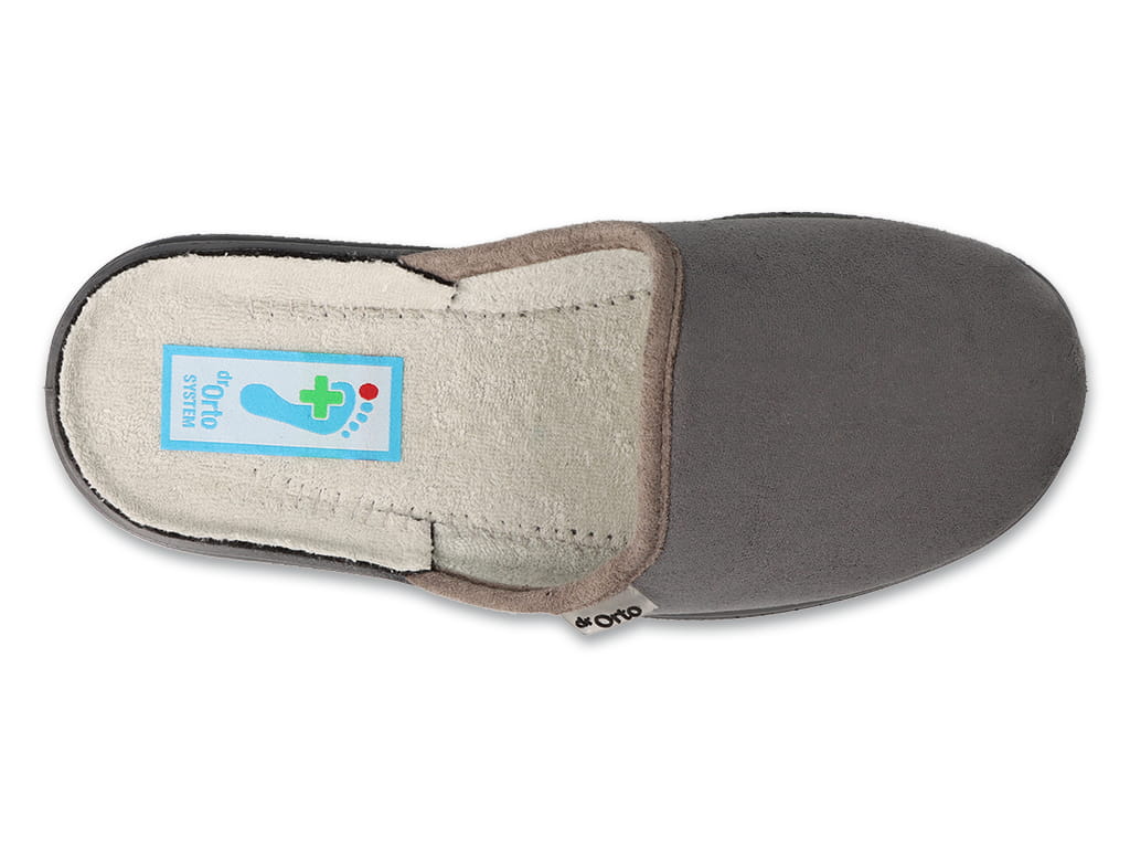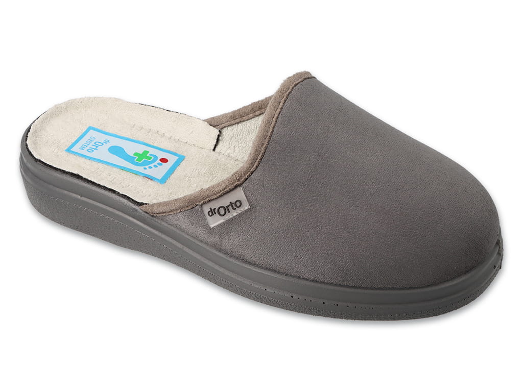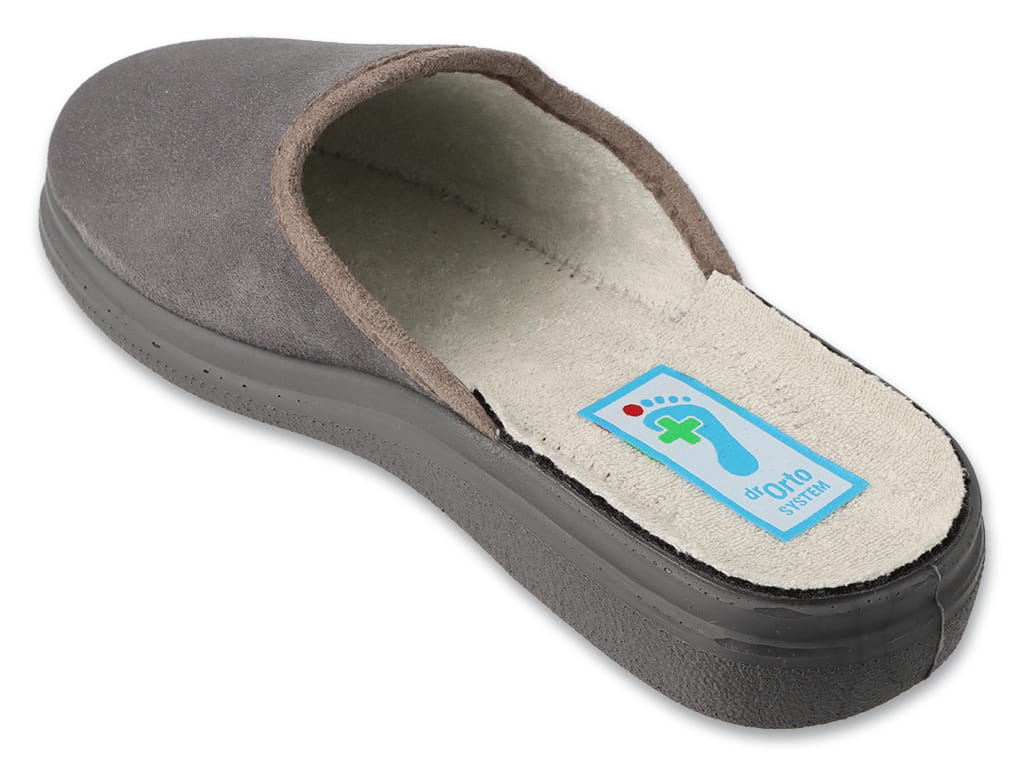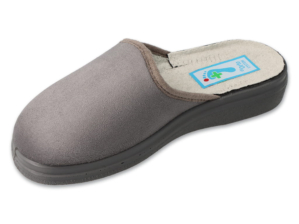 Lekki i wygodny klapek domowy. Wykonany z oddychających i opiankowanych materiałów wysokiej jakości, o dobrych właściwościach higienicznych. Podwyższona tęgość obuwia oraz szeroki i wysoki czubek pozwala na swobodne ułożenie palców. Dzięki zminimalizowanej ilości przeszyć polecany również dla osób ze stopą cukrzycową.