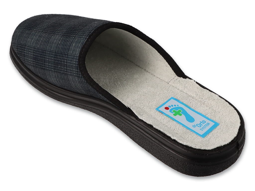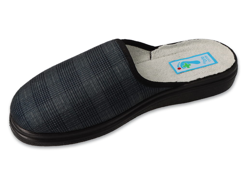 Lekki i wygodny klapek domowy. Wykonany z oddychających i piankowanych materiałów wysokiej jakości, o dobrych właściwościach higienicznych. Podwyższona tęgość obuwia oraz szeroki i wysoki czubek pozwala na swobodne ułożenie palców. Dzięki zminimalizowanej ilości przeszyć polecany również dla osób ze stopą cukrzycową.