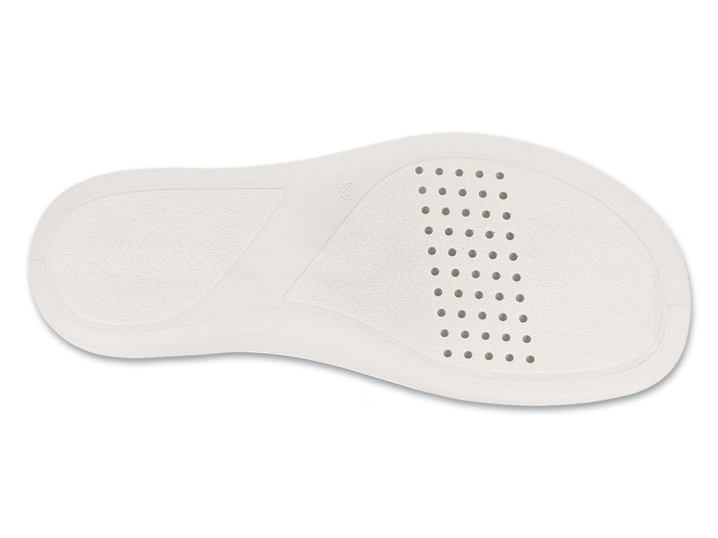 Obuwie wyposażono w stabilną, antypoślizgową podeszwę, która zwiększa bezpieczeństwo poruszania się na różnych nawierzchniach. Zastosowane materiały charakteryzują się wysoką jakością, trwałością oraz odpornością na odkształcenia, co przekłada się na długotrwałe użytkowanie. Wyściółka wykonana z naturalnej skóry sprzyja zachowaniu higieny stóp i komfortu nawet podczas wielogodzinnego noszenia. Możliwość regulacji pozwala na indywidualne dopasowanie klapek do stopy, pomagając ograniczyć ryzyko ucisku i otarć.