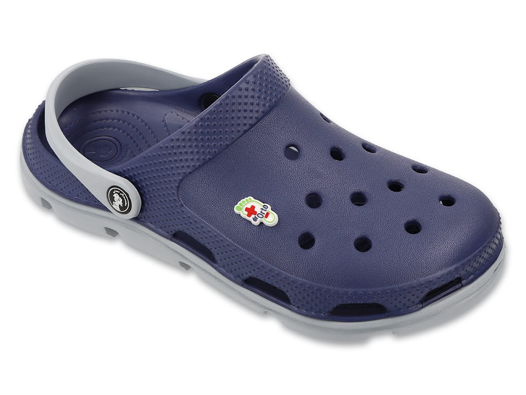Chodaki medyczne męskie Dr Orto Med to lekkie i wygodne obuwie stworzone z myślą o osobach, które potrzebują praktycznych butów do pracy oraz codziennych obowiązków. Dzięki perforowanej cholewce zapewniają dobrą wentylację stóp, co zwiększa komfort podczas wielogodzinnego noszenia. Ruchomy pasek na pięcie pozwala dopasować sposób użytkowania – można nosić je jako klasyczne klapki lub stabilne chodaki.