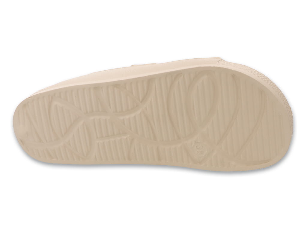 Ciepły brązowy kolor nadaje klapkom klasyczny i uniwersalny wygląd, dzięki czemu model dobrze pasuje zarówno do domowego stroju, jak i letnich stylizacji. Lekka konstrukcja oraz otwarty fason sprawiają, że obuwie doskonale sprawdzi się podczas codziennego użytkowania.