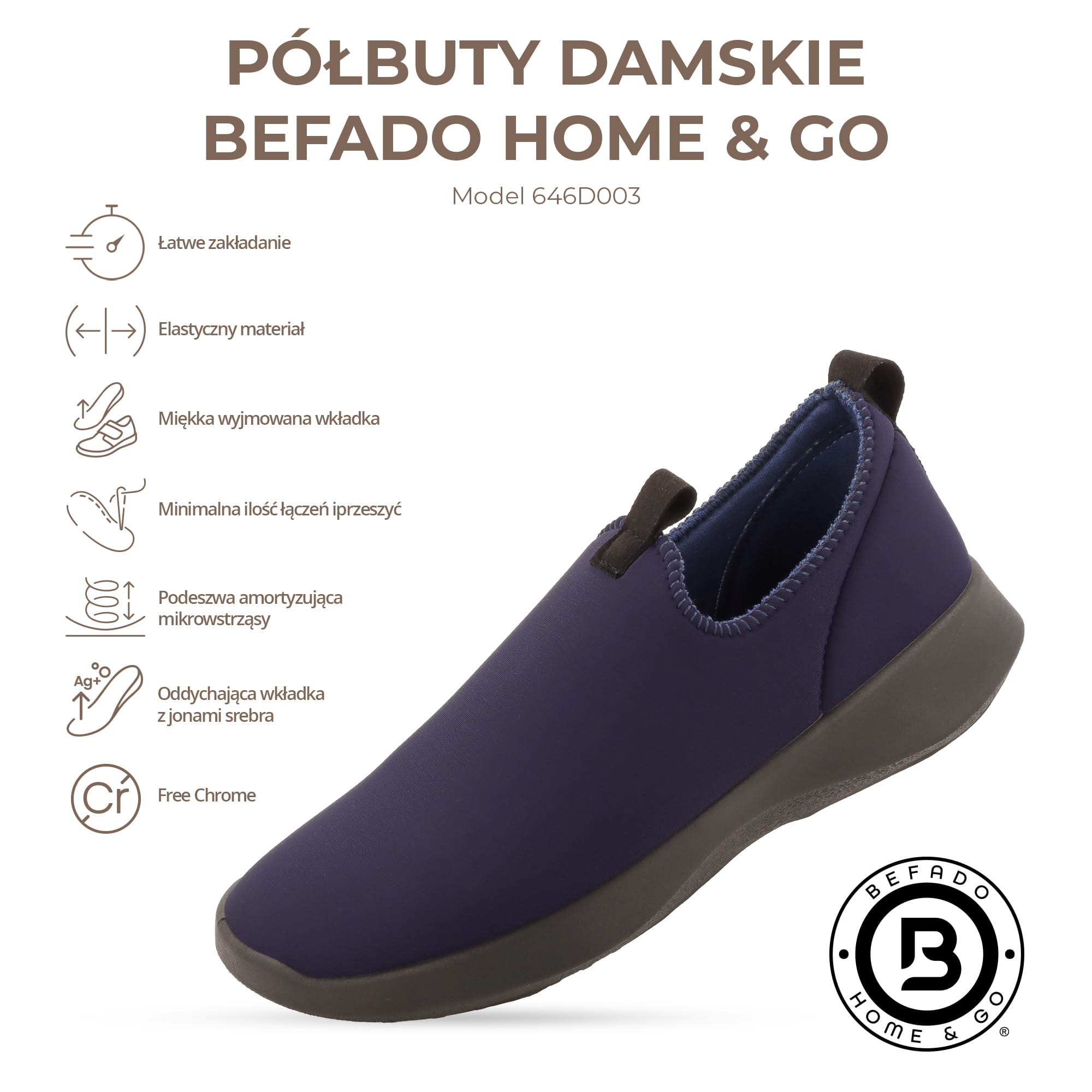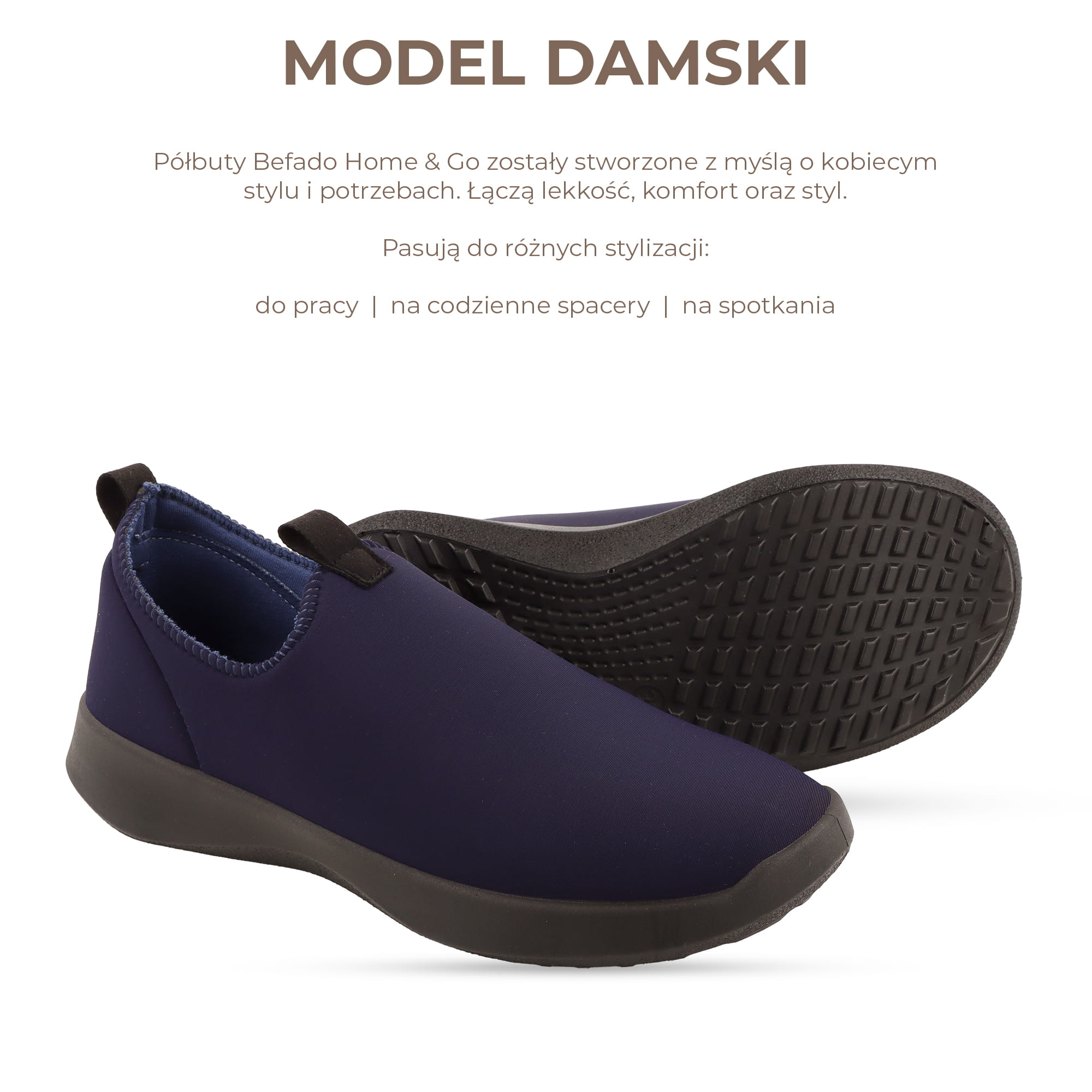 Półbuty damskie Befado Home & Go – wsuwane granatowe sneakersy slip-on