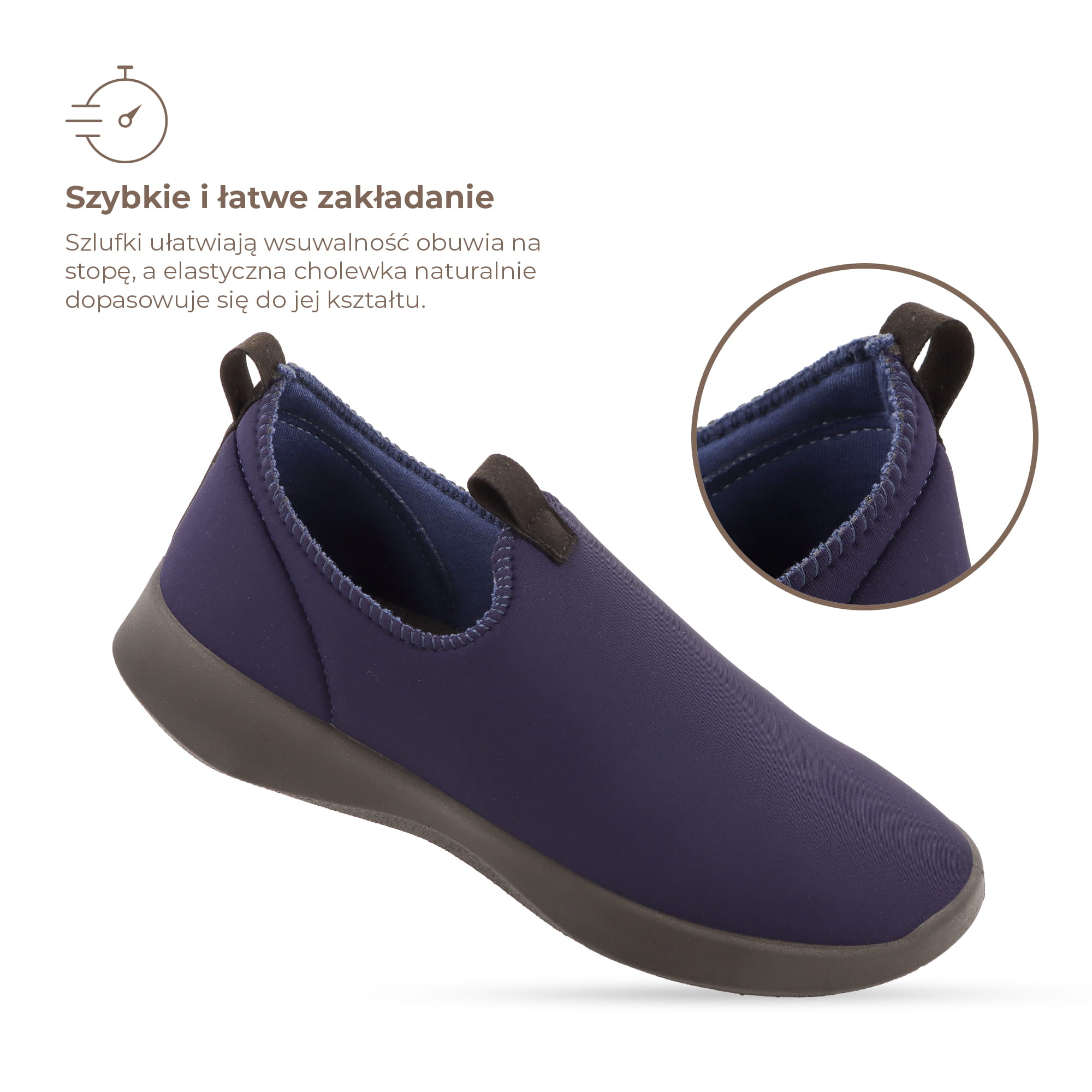 - Fason typu slip-on – wygodna, wsuwana konstrukcja gwarantuje szybkie i bezproblemowe zakładanie obuwia każdego dnia,