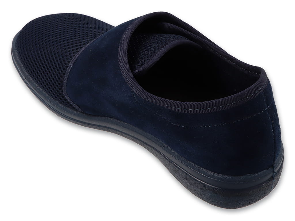 Obuwie Dr Orto polecane jako wyjściowe. Wykonane z miękkich tkanin o wysokiej jakości, może służyć osobom, których stopy są szczególnie wrażliwe na otarcia. Elastyczne, lekkie, dzięki zapięciu na rzepy łatwo dopasowuje się do kształtu stopy.