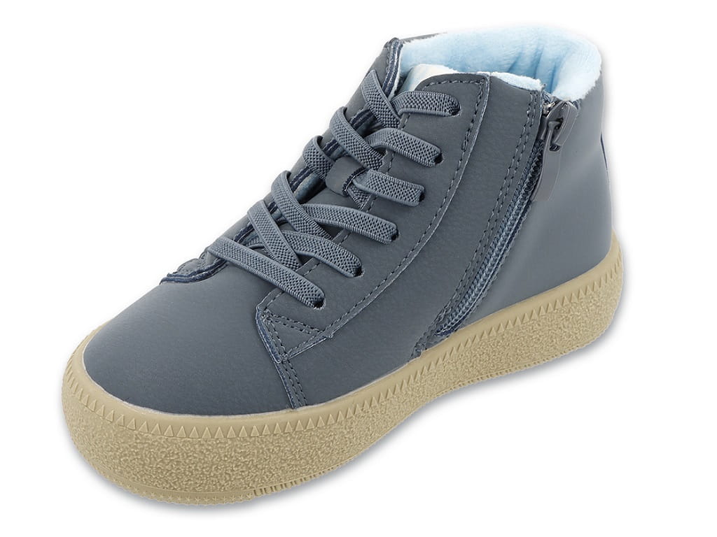 Praktyczny boczny suwak: Oprócz klasycznego sznurowania, buty posiadają zamek błyskawiczny, co pozwala dziecku na szybkie i samodzielne zakładanie obuwia.