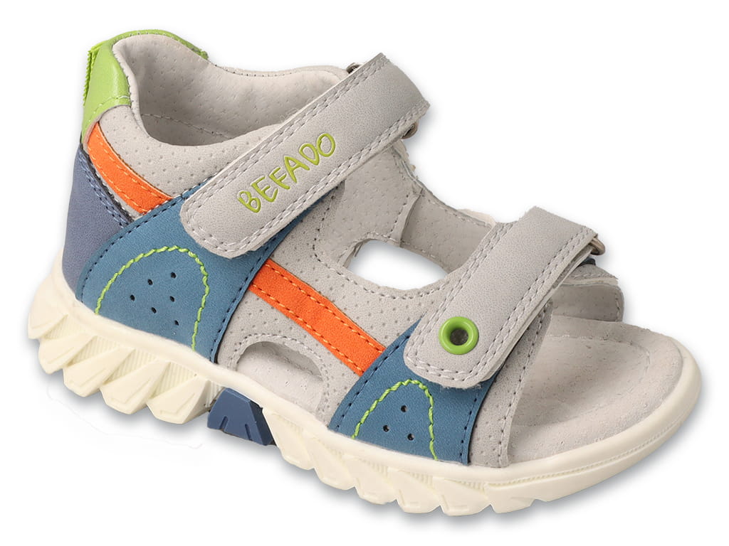 Nowoczesne sandały chłopięce Befado to idealne obuwie dla aktywnych dzieci, które lubią ruch i zabawę na świeżym powietrzu. Sportowy design z kolorowymi detalami nadaje modelowi dynamiczny charakter, dzięki czemu sandały świetnie pasują do codziennych letnich stylizacji.