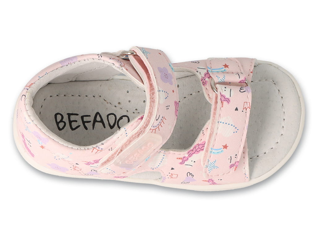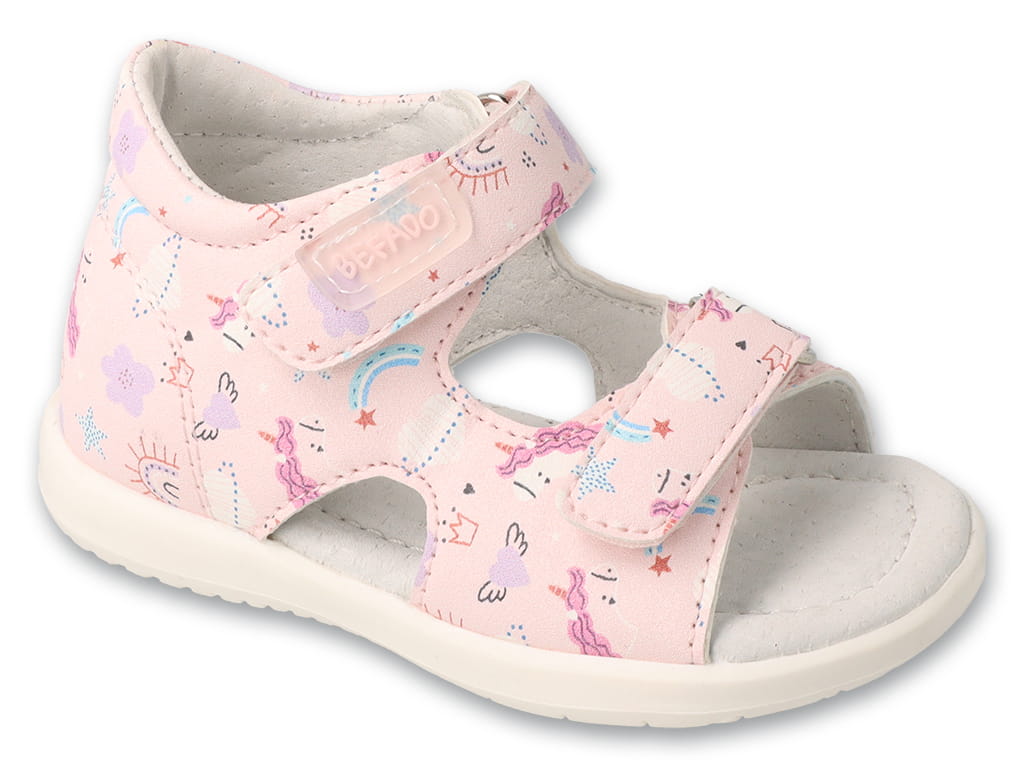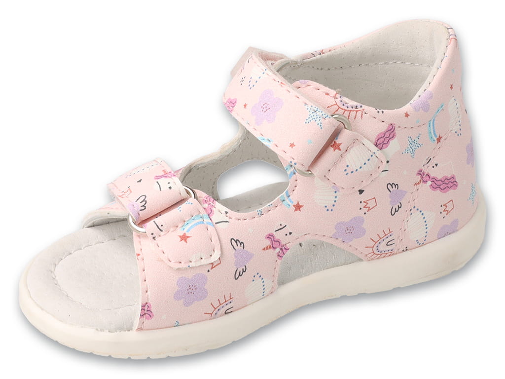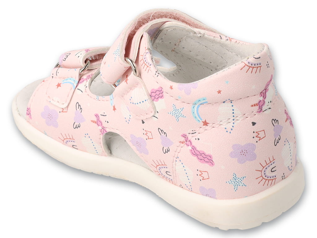 Różowe sandały dziewczęce Befado z jednorożcami – elastyczna podeszwa i skórzana wkładka